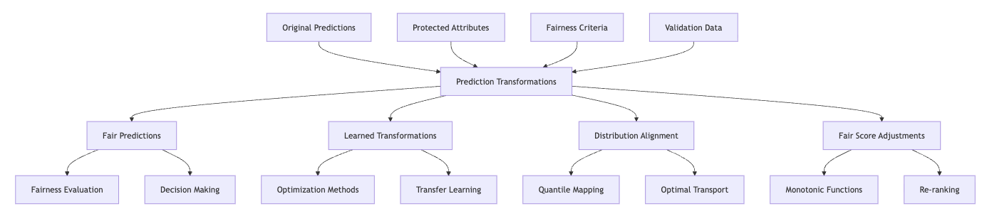 - Score Transformation: Modifies scores to achieve fairness before thresholding.