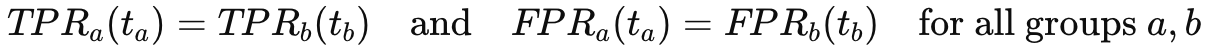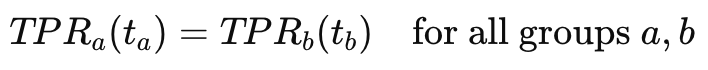 For equal opportunity, we seek thresholds tₐ for each group a such that: